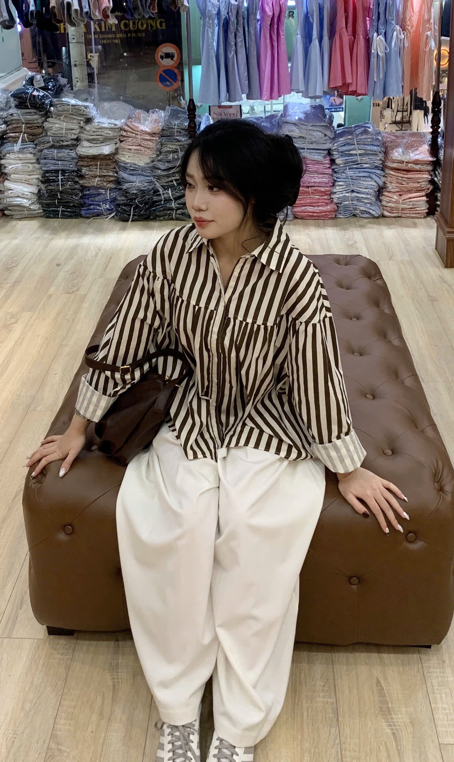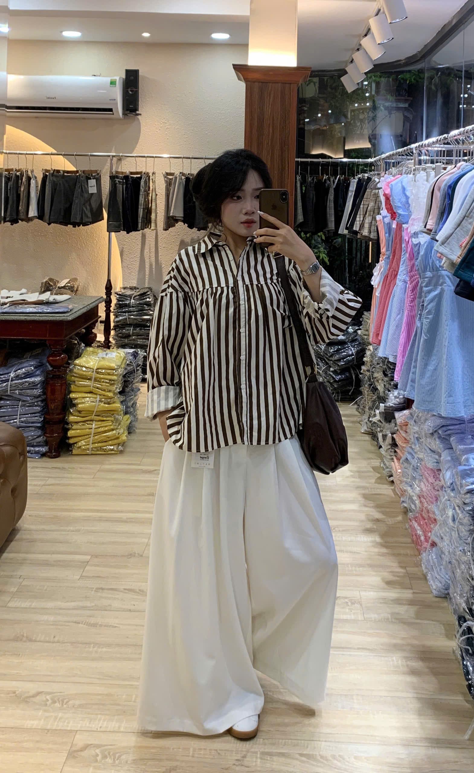 ✨ ÁO SƠ MI NỮ SỌC DÀI TAY – ANU-010 ✨ • Thiết kế: Áo sơ mi dáng rộng, tay dài bo nhẹ ở cổ tay, cổ bẻ truyền thống. Điểm nhấn đường sọc dọc giúp cơ thể trông thon gọn, dễ mặc. Form rộng thoải mái, phù hợp nhiều dáng người. • Chất liệu: Cotton pha, mềm mại, thoáng mát, dễ chăm sóc. • Màu sắc: • N: Nâu sọc trắng • X: Xanh sọc trắng • K: Kem sọc đen • Xđ: Xanh đậm sọc trắng • Size: S, M, L • Xuất xứ: Việt Nam
