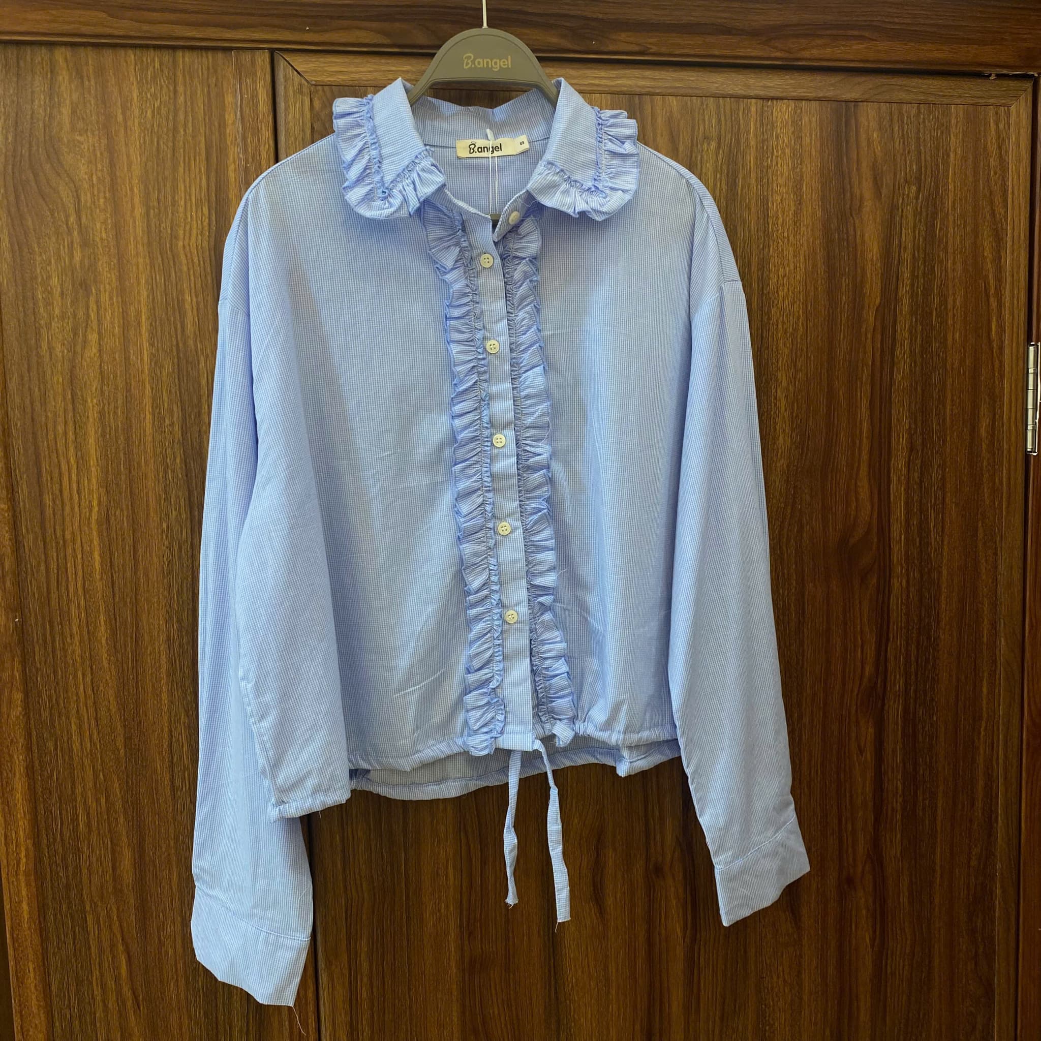 ✨ ÁO SƠ MI CỔ BÈO NỮ TÍNH – ANU-004 ✨ • Thiết kế: Áo sơ mi dài tay, cổ tròn phối bèo xinh xắn. Thân áo có hàng cúc dọc trước, viền bèo chạy theo hàng nút tạo điểm nhấn nổi bật. Dáng suông dễ mặc, tôn dáng, mang lại nét nữ tính và thanh lịch. • Chất liệu: Vải thô mềm, thoáng mát, tạo cảm giác dễ chịu khi mặc. • Màu sắc: • K: Kem trắng • H: Hồng san hô • X: Xanh baby • Size: S, M, L. • Xuất xứ: Việt Nam.