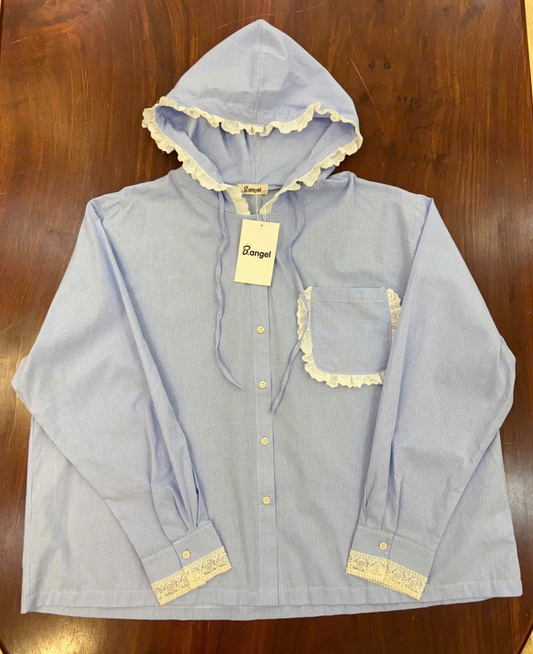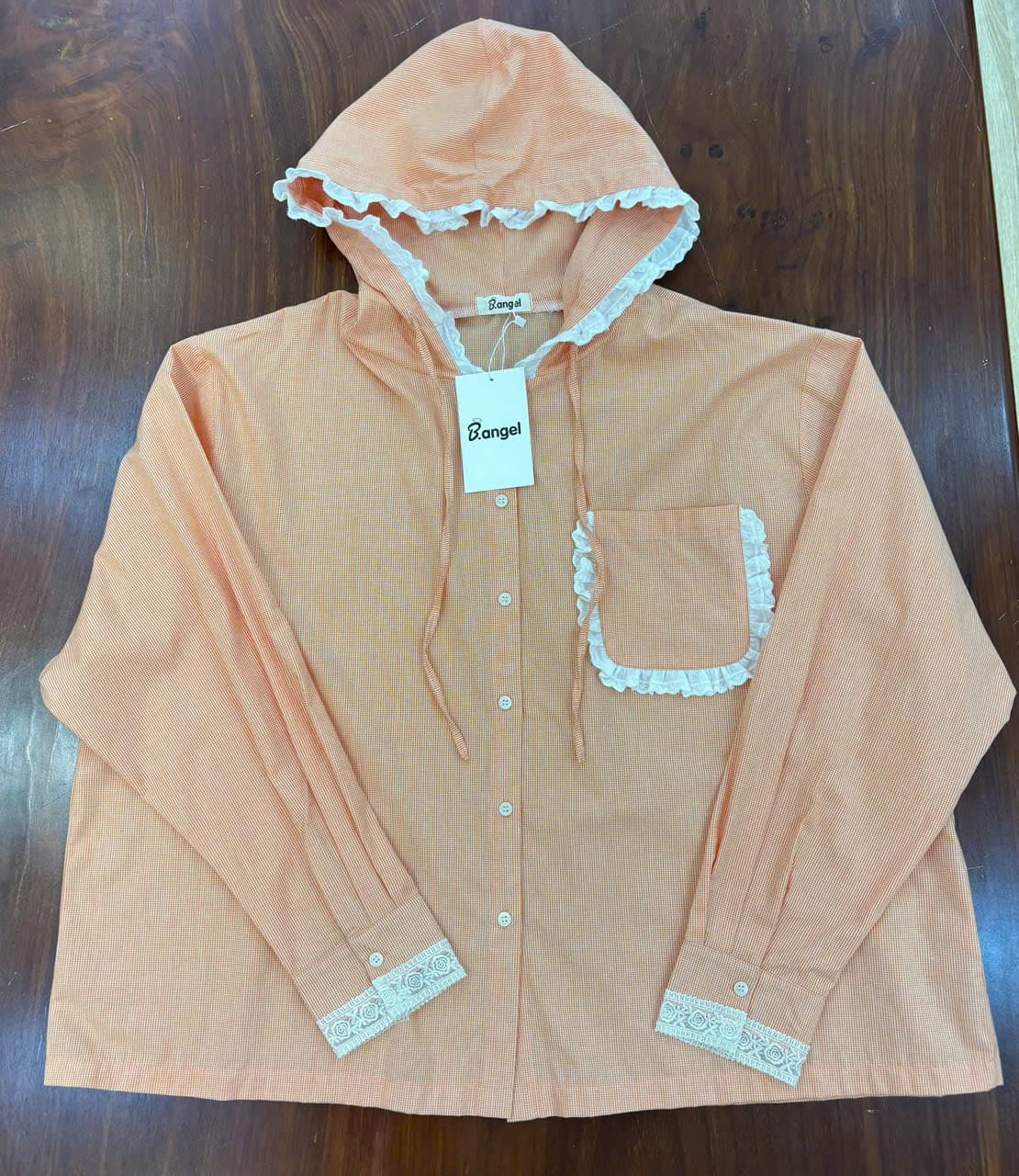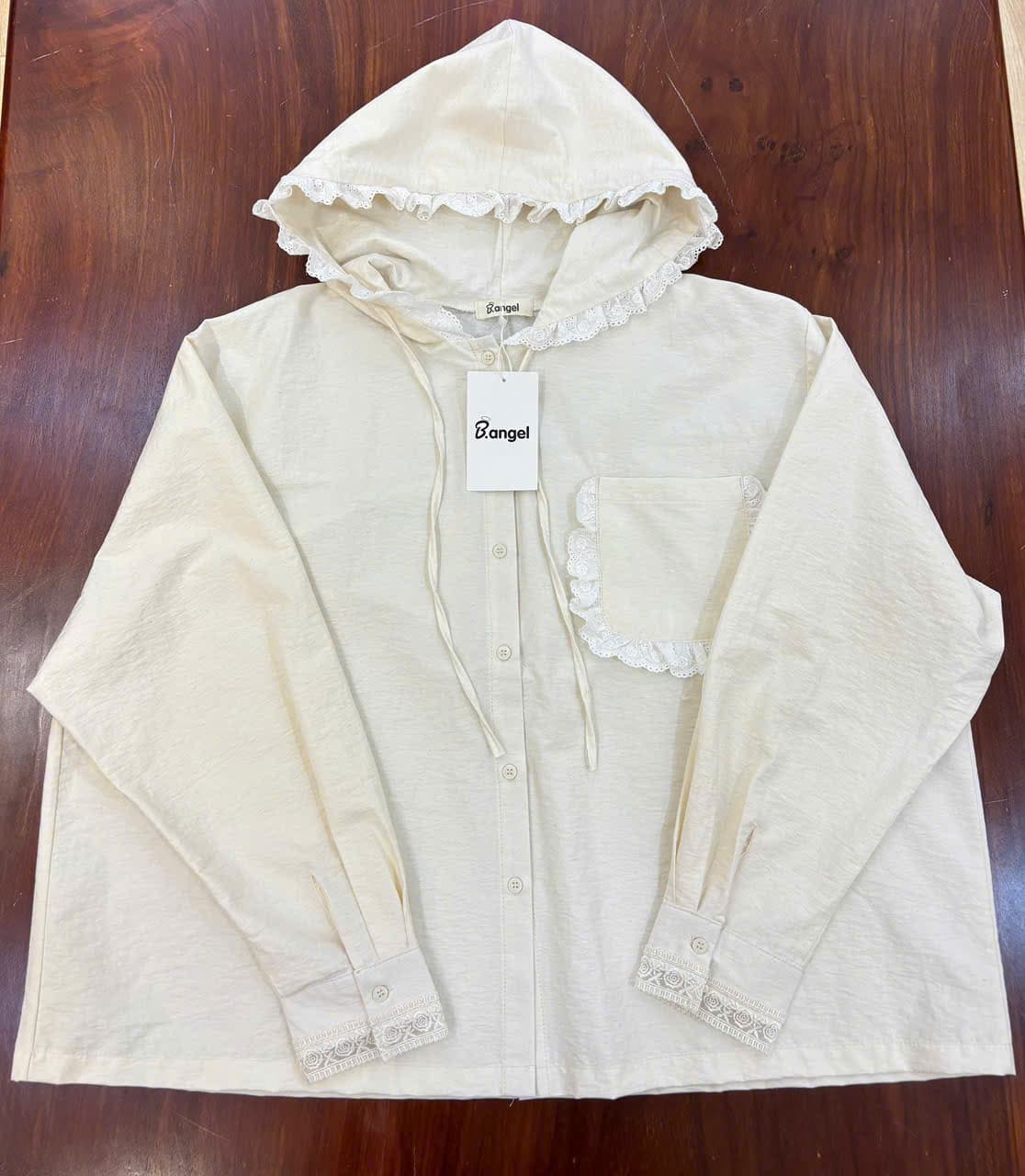 ÁO SƠ MI NỮ CỔ REN – ANU-005 ✨ • Thiết kế: Áo sơ mi dài tay dáng suông, điểm nhấn viền ren tinh tế ở cổ tay và túi áo, tạo sự thanh lịch, nhẹ nhàng. Có nón phối bèo xinh xắn, dễ mix nhiều phong cách khác nhau. • Chất liệu: Vải cotton mềm mịn, thoáng mát, dễ chịu khi mặc. • Màu sắc: • X: Xanh pastel • K: Kem nhạt • C: Cam đào • Size: S, M, L • Giá: 145.000đ • Xuất xứ: Việt Nam