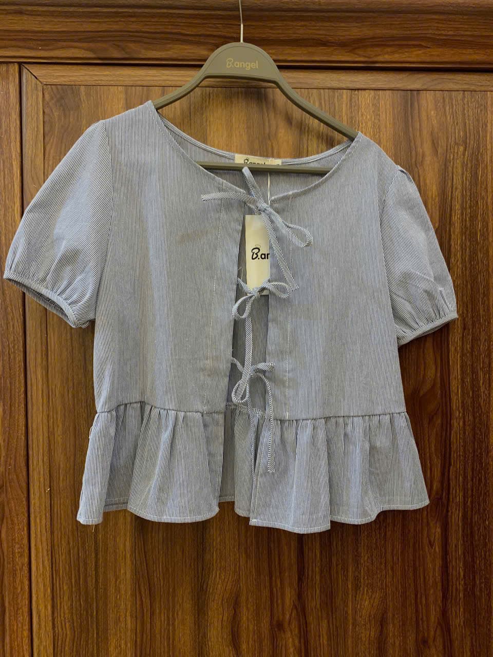 ✨ ÁO KIỂU NỮ BUỘC NƠ – ANU-006 ✨ • Thiết kế: Áo dáng ngắn, tay ngắn rộng thoải mái, điểm nhấn nổi bật với chi tiết buộc nơ trước ngực, tạo phong cách nữ tính và trẻ trung. Form dễ mặc, phù hợp đi chơi, đi học hoặc dạo phố. • Chất liệu: Vải cotton thô thoáng mát, nhẹ, dễ chịu cho làn da. • Màu sắc: • T: Trắng sọc nhiều màu pastel • X1: Xanh sọc nhạt • X2: Xanh sọc đậm • Size: S, M, L • Giá: 125.000đ • Xuất xứ: Việt Nam