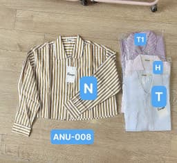 ÁO SƠ MI NỮ SỌC DÀI TAY – ANU-008 ✨ • Thiết kế: Áo sơ mi dáng basic, tay dài, cổ bẻ thanh lịch. Form rộng vừa, dễ phối đồ, mang phong cách trẻ trung, năng động nhưng vẫn giữ nét tinh tế. Có hàng nút phía trước tiện lợi. • Chất liệu: Cotton thoáng mát, mềm mại, thấm hút tốt. • Màu sắc: • N: Nâu sọc • T1: Tím sọc • H: Hồng sọc • T: Trắng trơn • Size: S, M, L • Xuất xứ: Việt Nam