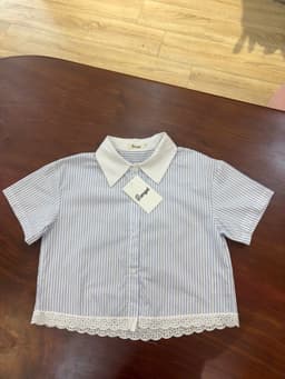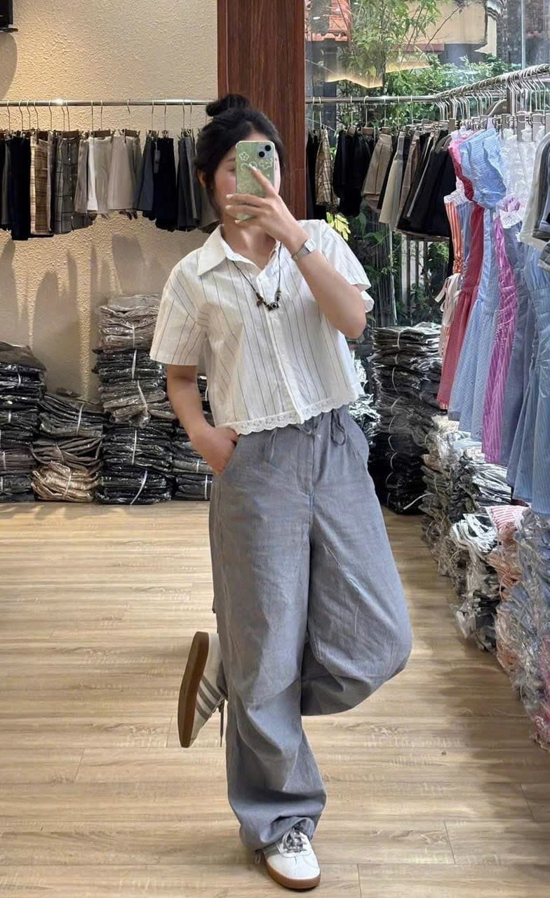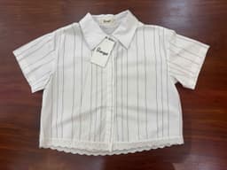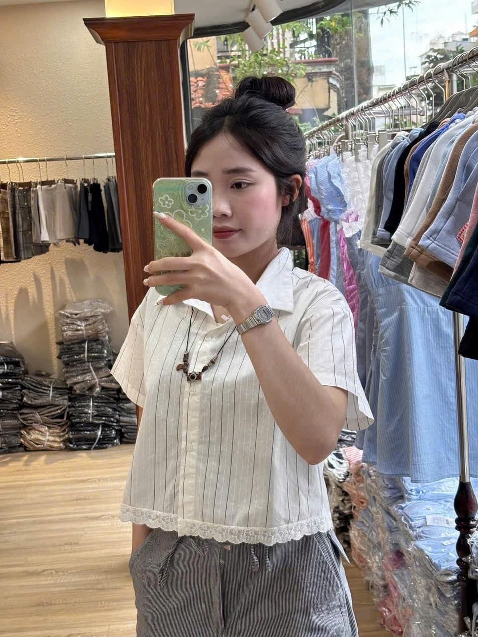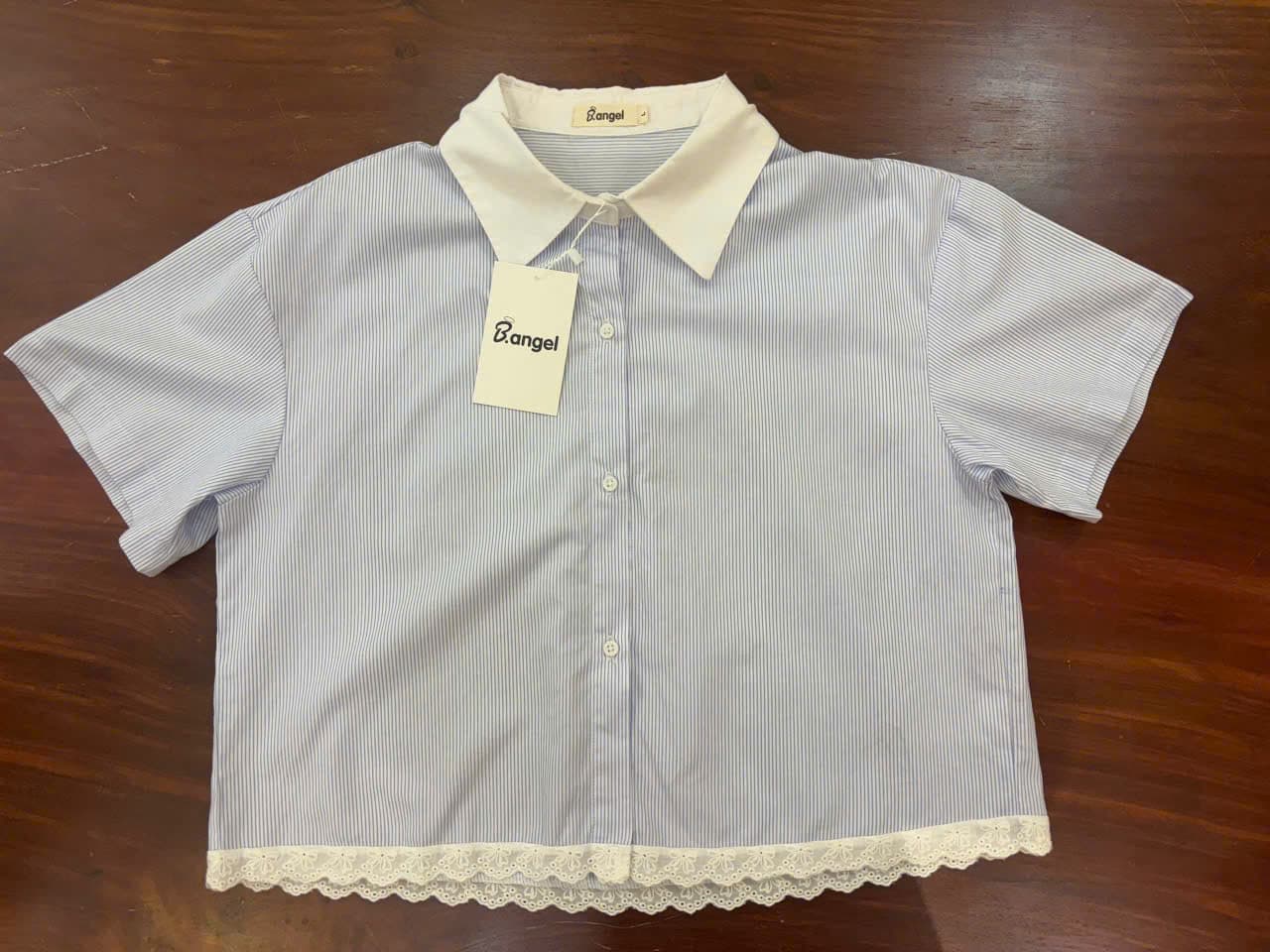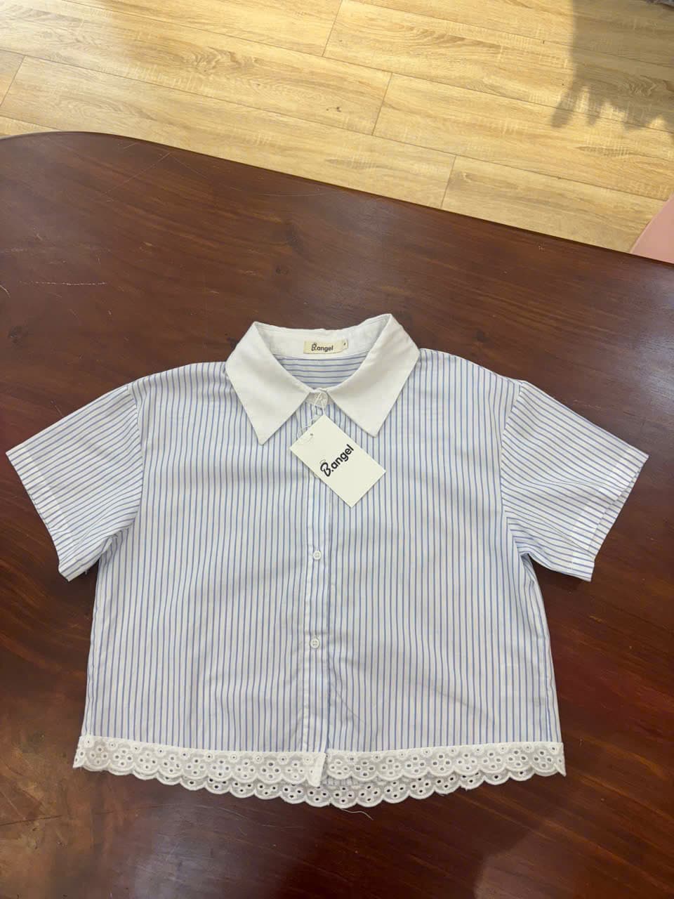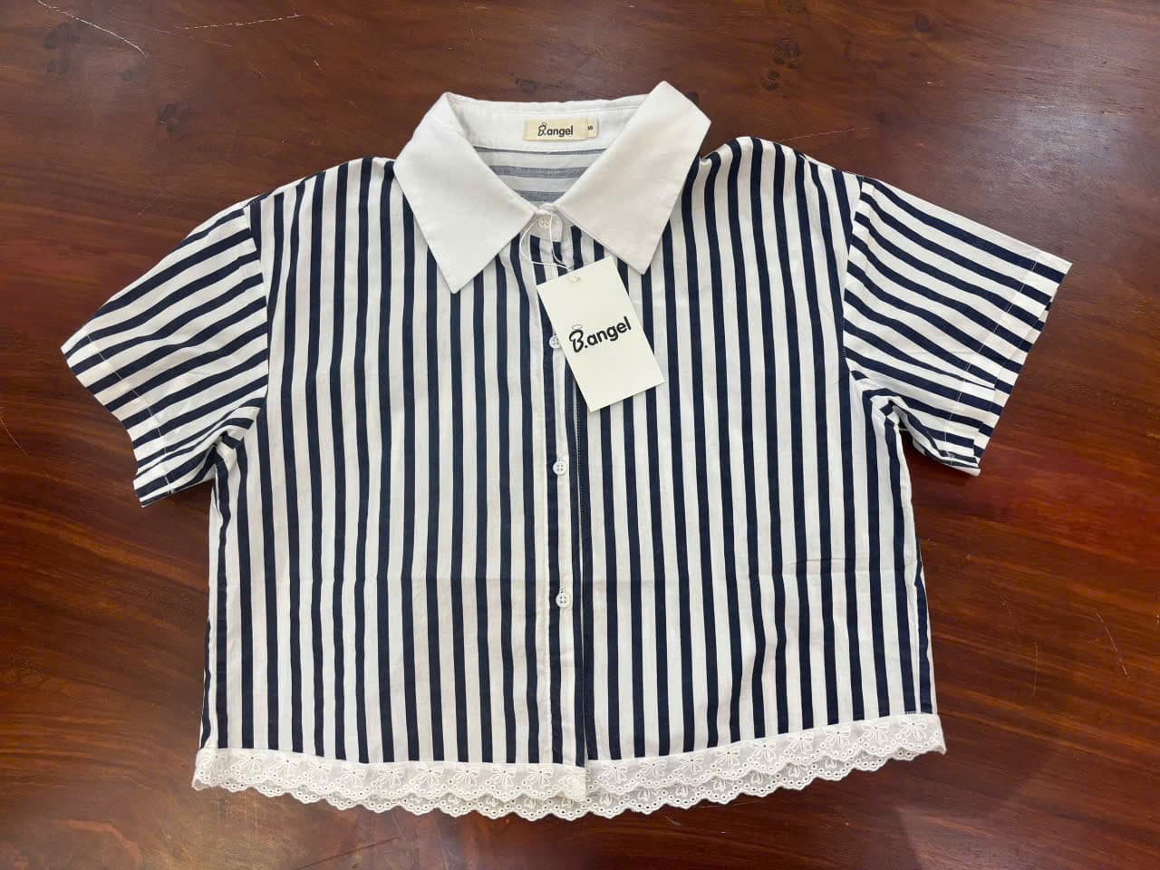 ✨ ÁO SƠ MI NỮ SỌC NGẮN TAY – ANU-011 ✨ • Thiết kế: Áo sơ mi dáng croptop ngắn tay, cổ bẻ trắng phối nổi bật. Thân áo họa tiết sọc dọc tạo hiệu ứng thon gọn, trẻ trung. Điểm nhấn viền ren dưới gấu áo mang lại nét nữ tính, duyên dáng. • Chất liệu: Cotton pha, mềm mịn, thoáng mát, dễ mặc. • Màu sắc: • X1: Sọc xanh đậm • T: Trắng sọc nhạt • X2: Sọc xanh nhạt • Size: S, M, L • Xuất xứ: Việt Nam
