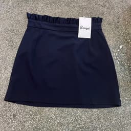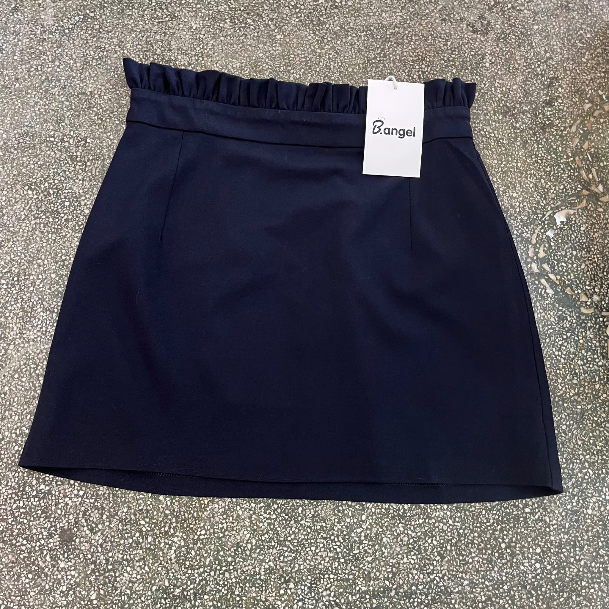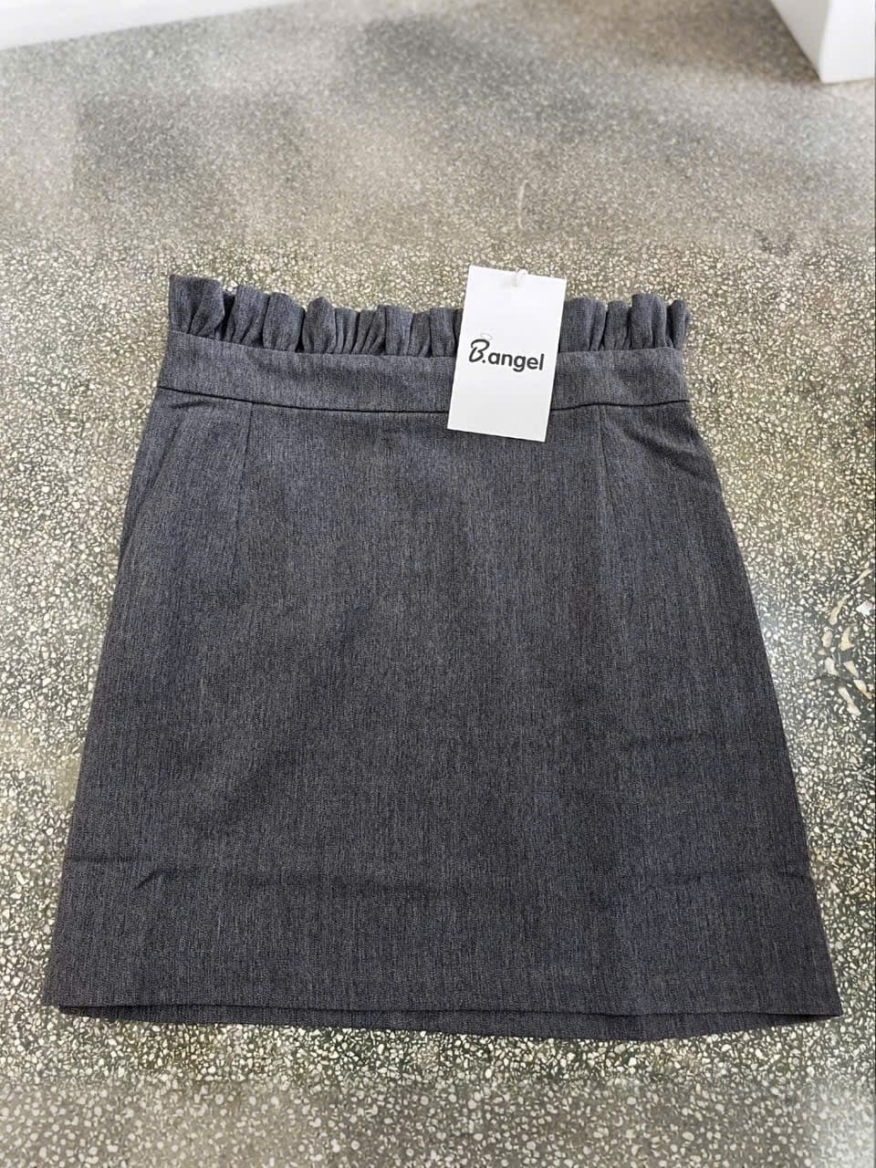 Chân váy chữ A ngắn với phần cạp rút nhẹ tạo nếp bèo tinh tế ở viền trên.