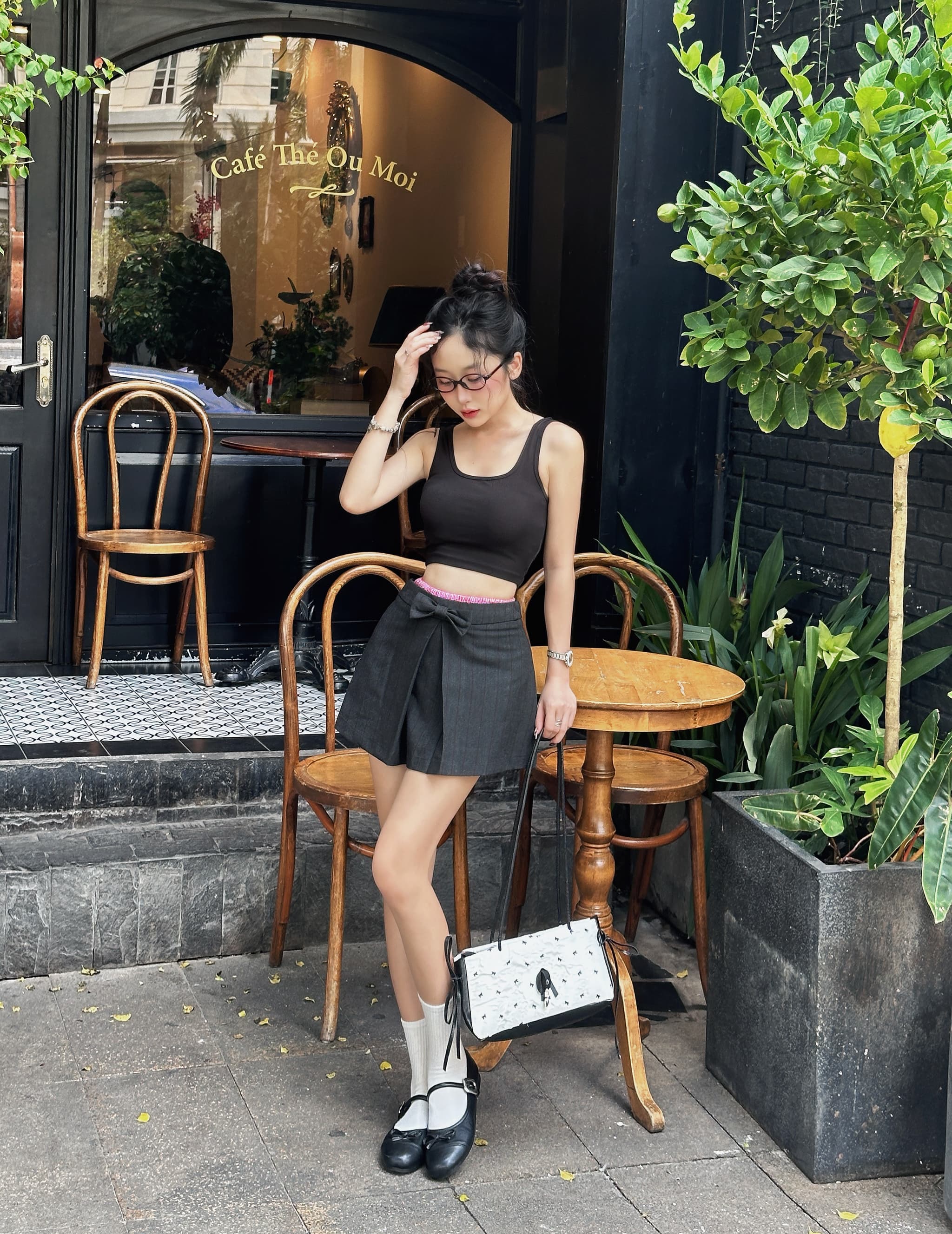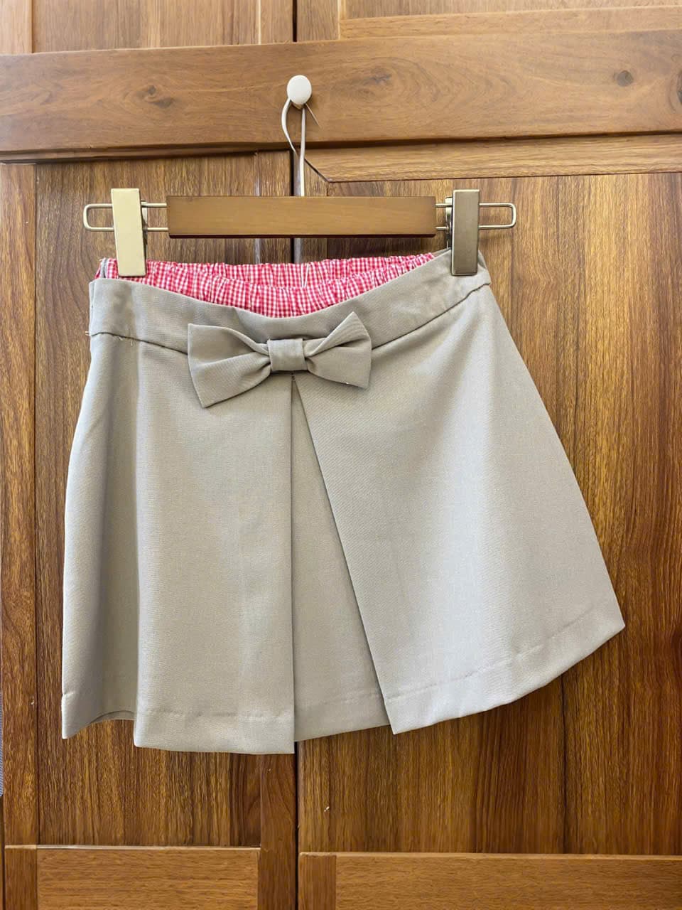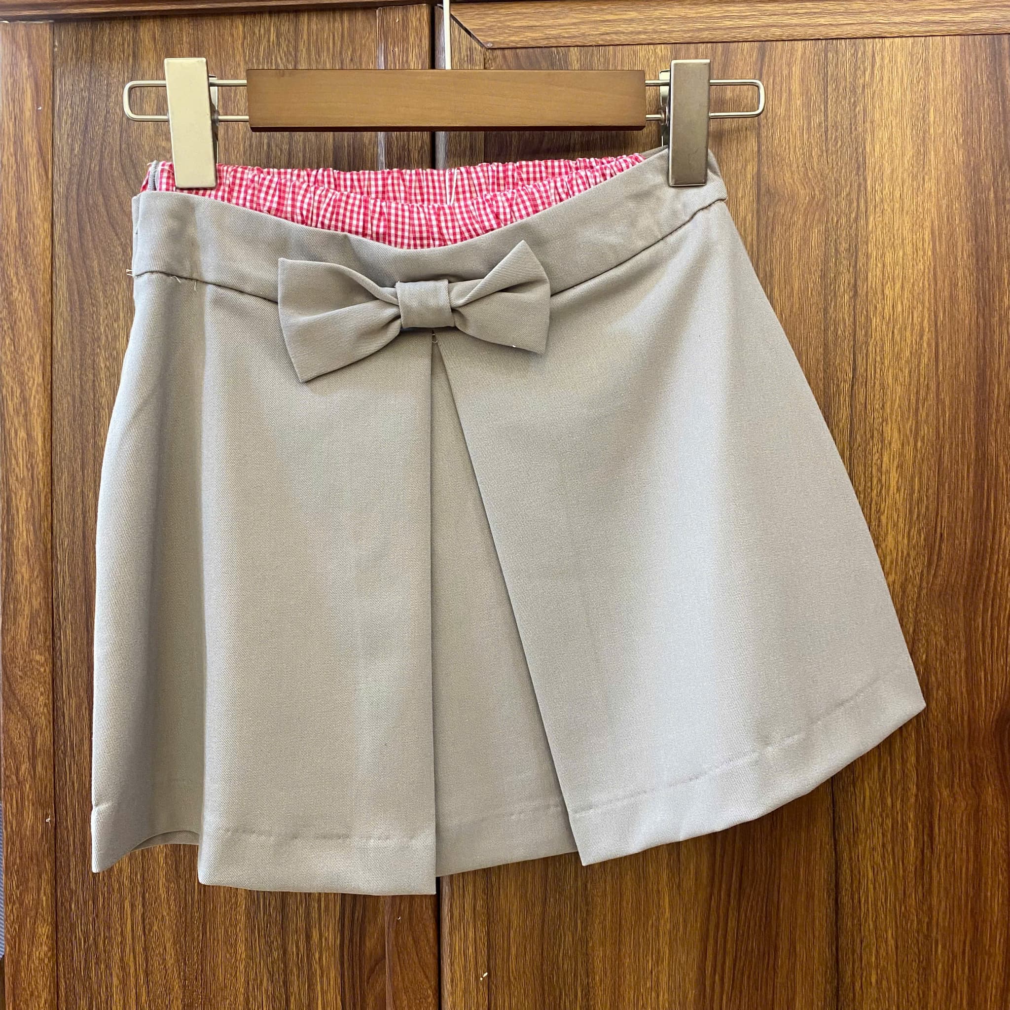 Chân váy chữ A nữ dáng xòe, đai eo nơ trang trí.