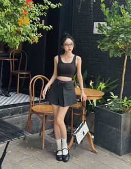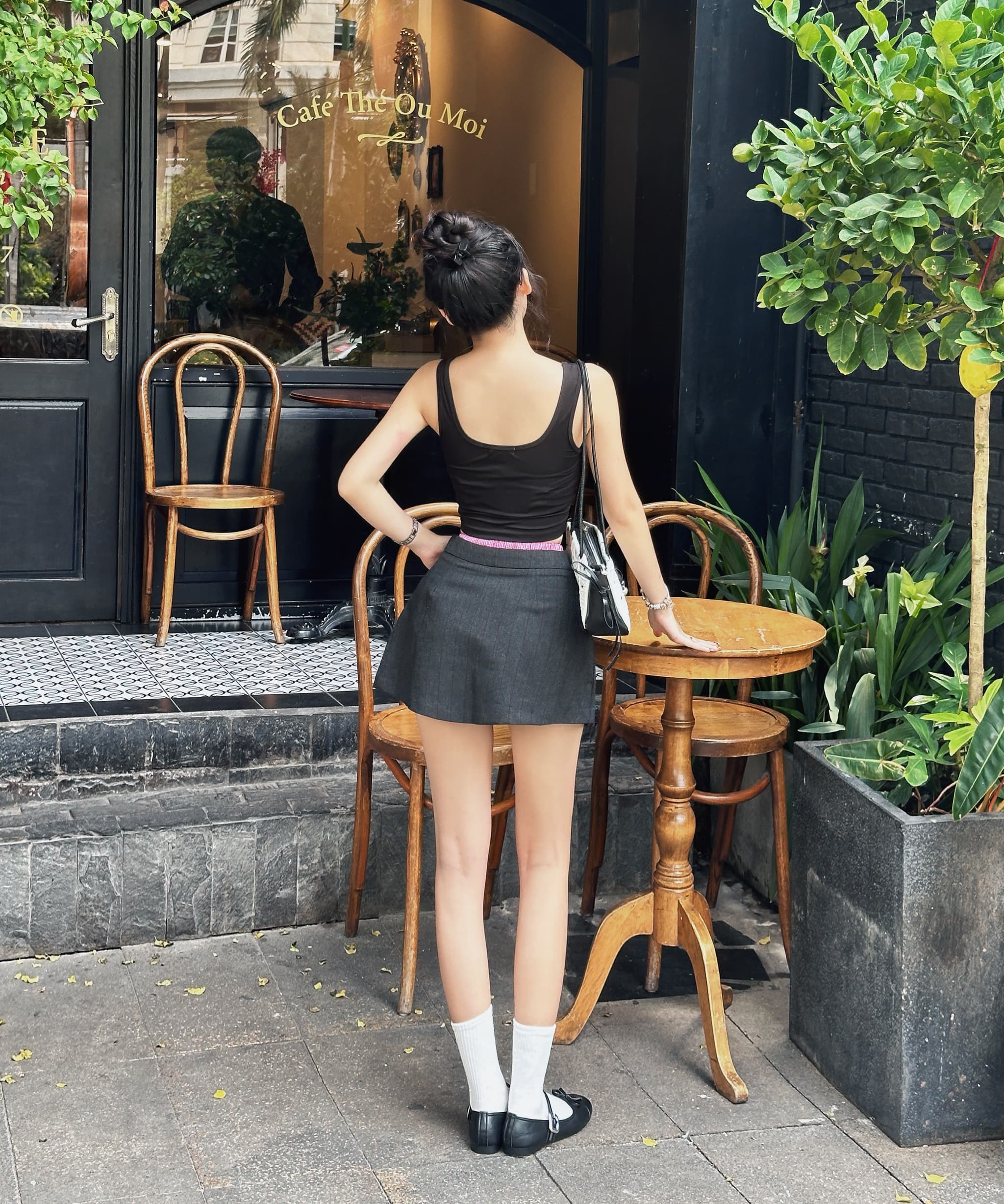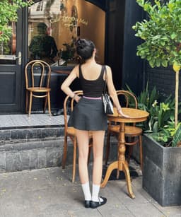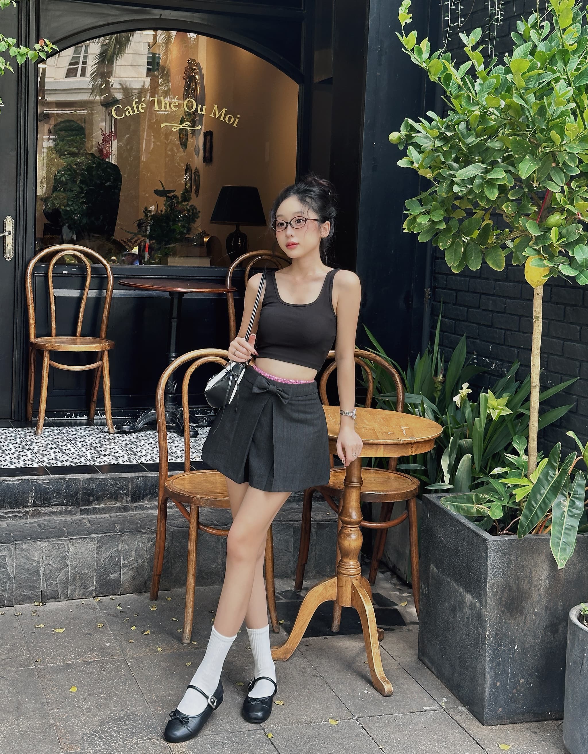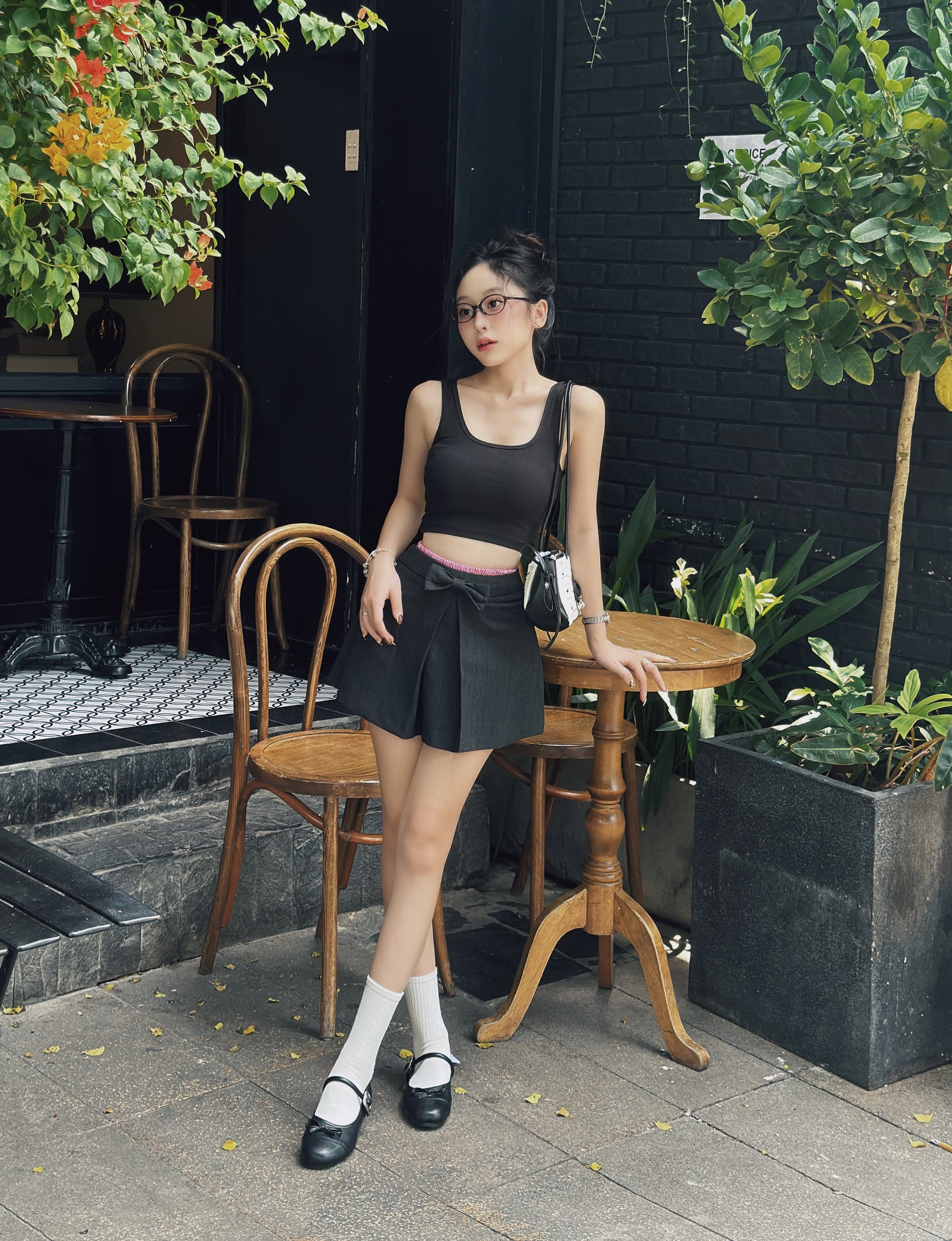 Chân váy chữ A nữ dáng xòe, đai eo nơ trang trí.