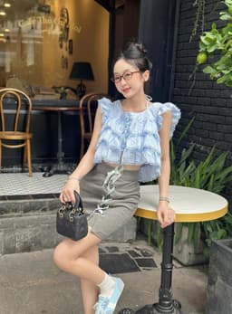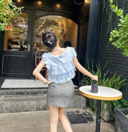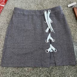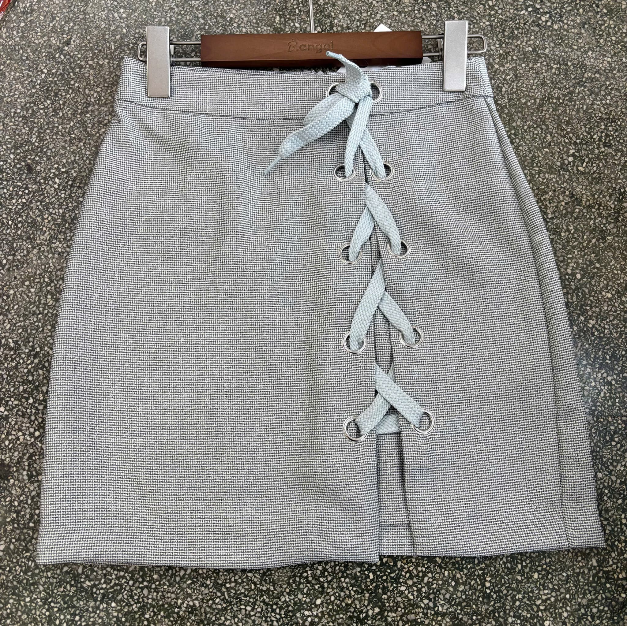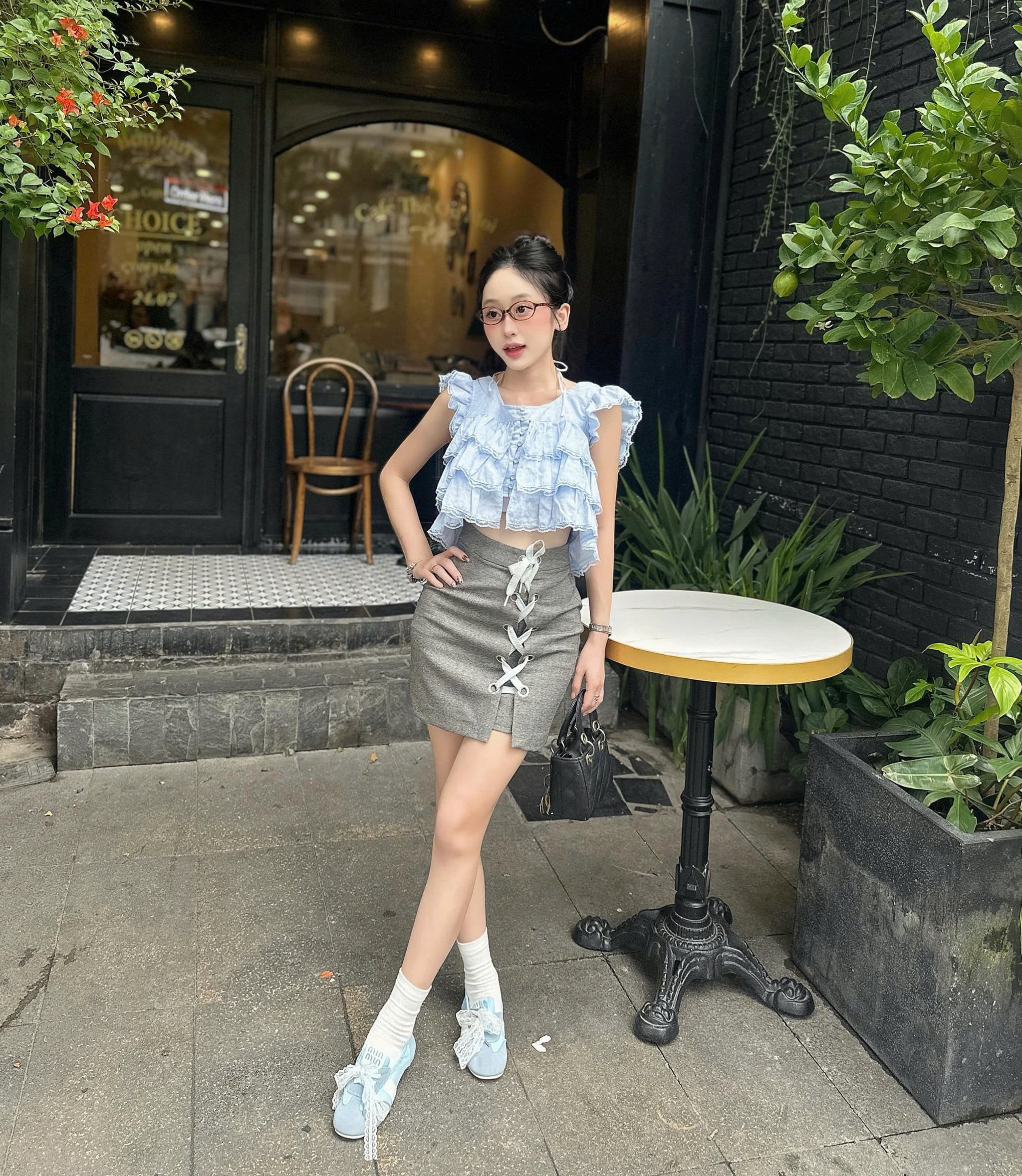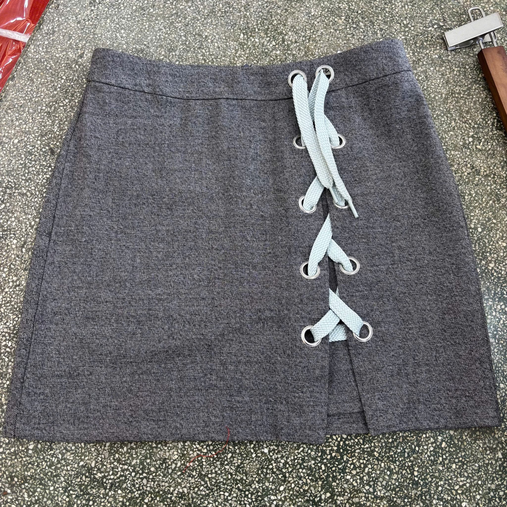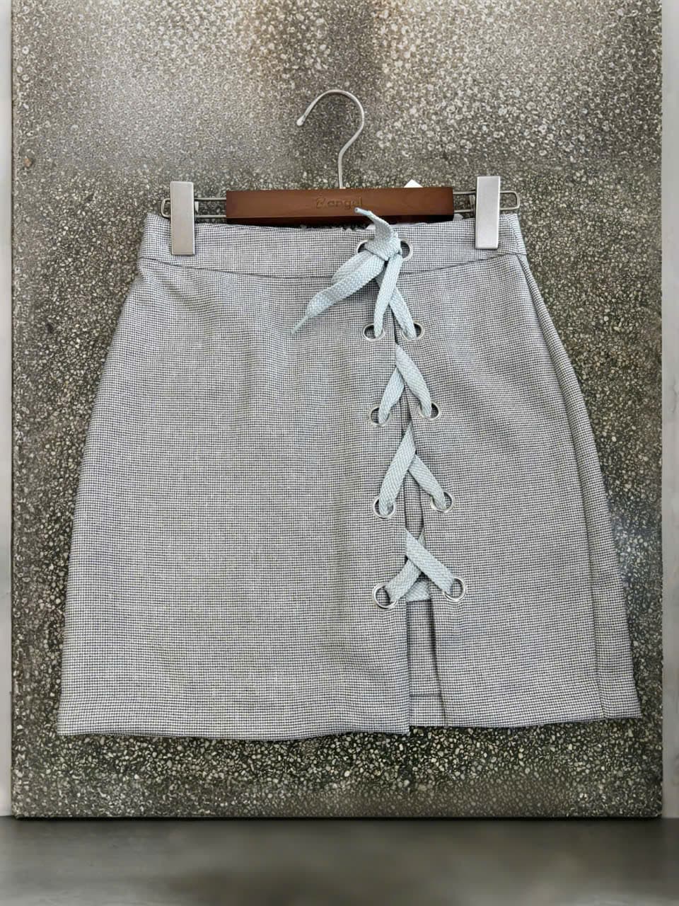 Chân váy nữ dáng ngắn cột dây chéo trước.