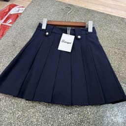 - Xanh navy(XD) • Xuất xứ: Việt Nam. • Đặc điểm: Form đứng, xếp ly đều, có đai và cúc trang trí ở cạp váy.