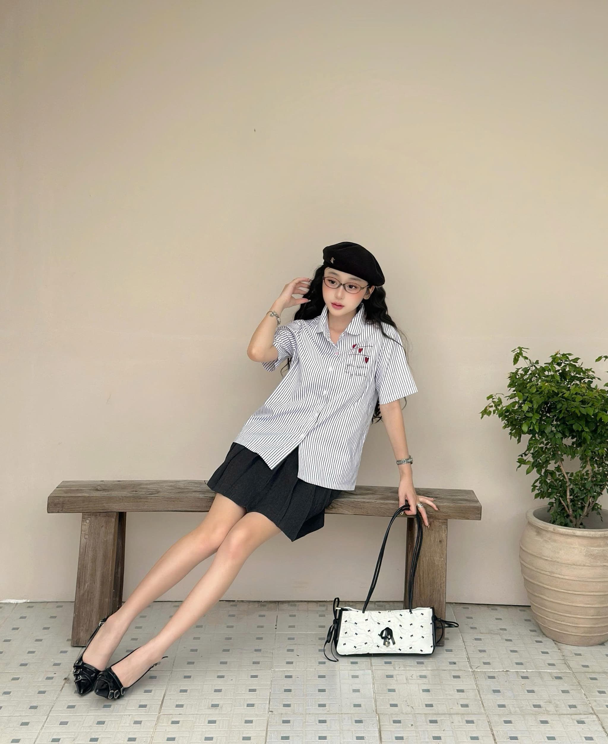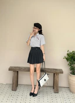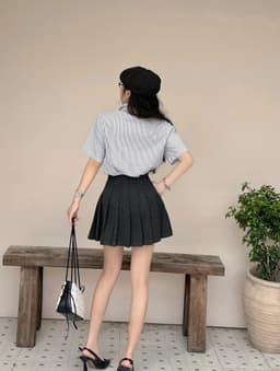 Chân váy xếp ly dáng ngắn của thương hiệu B.angel, thiết kế trẻ trung và dễ phối đồ.
