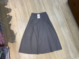- Nâu (N) • Xuất xứ: Việt Nam. • Đặc điểm: Dáng chữ A dài, xếp ly mềm tạo độ bồng nhẹ, chất vải dày dặn giúp giữ form đẹp, thích hợp mặc đi làm, đi học hoặc dạo phố.