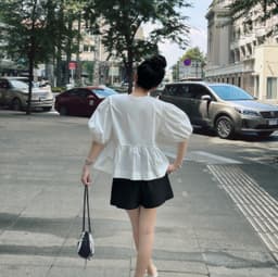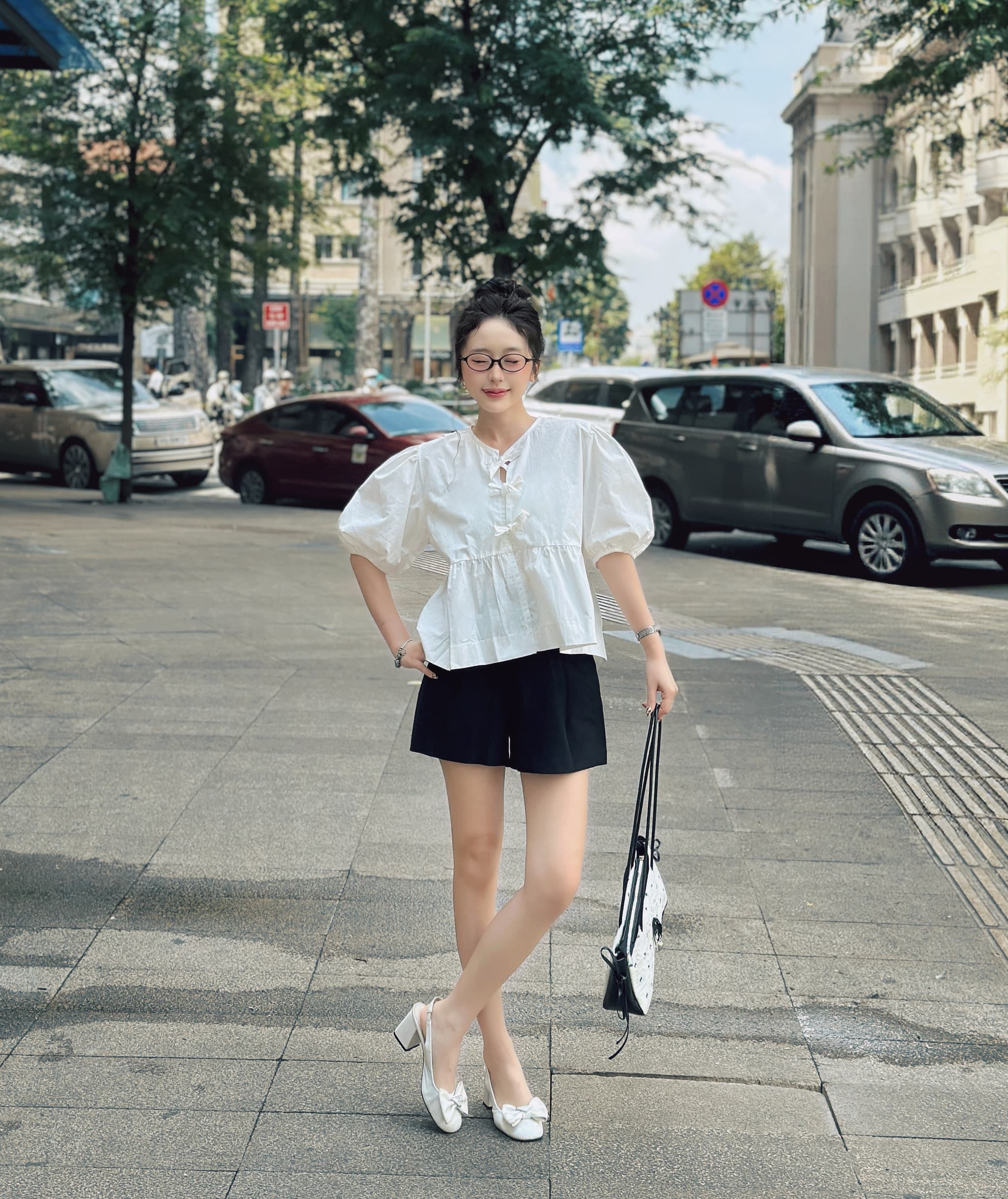 Quần short lưng cao dáng suông, có ly phía trước giúp form đứng đẹp và che khuyết điểm tốt.
