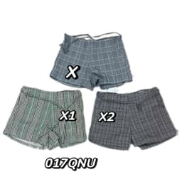 - Caro xám đen(X2) • Xuất xứ: Việt Nam • Đặc điểm: Chất vải mềm, co giãn nhẹ, form ngắn trẻ trung. Thiết kế cạp cao, có lớp quần lót trong giúp thoải mái vận động. Phù hợp mặc đi chơi, đi học, dạo phố.