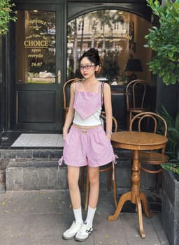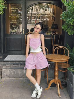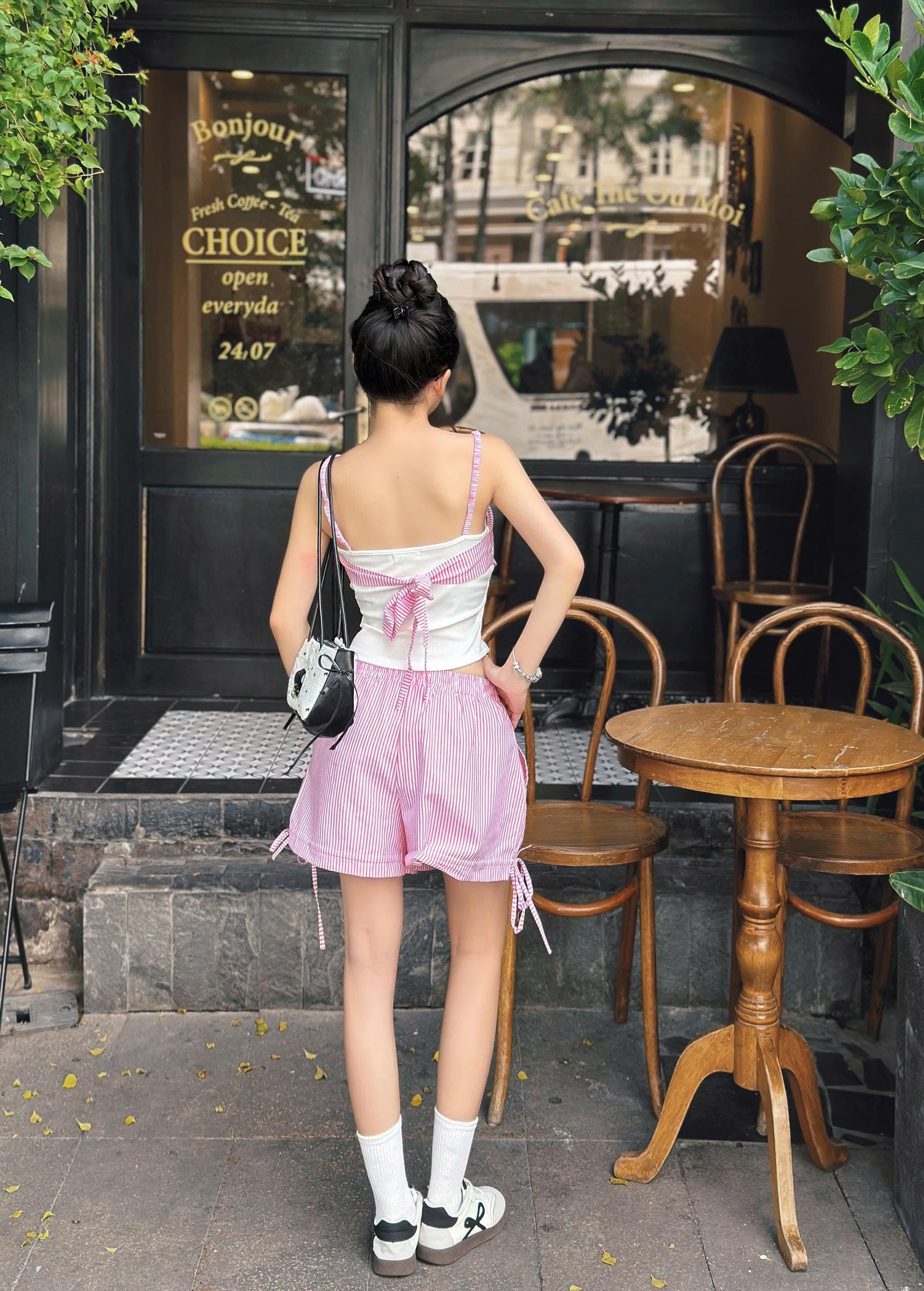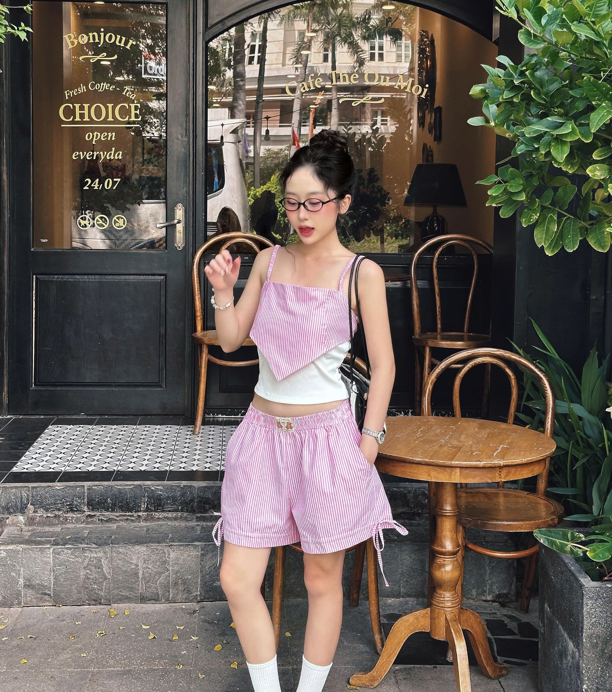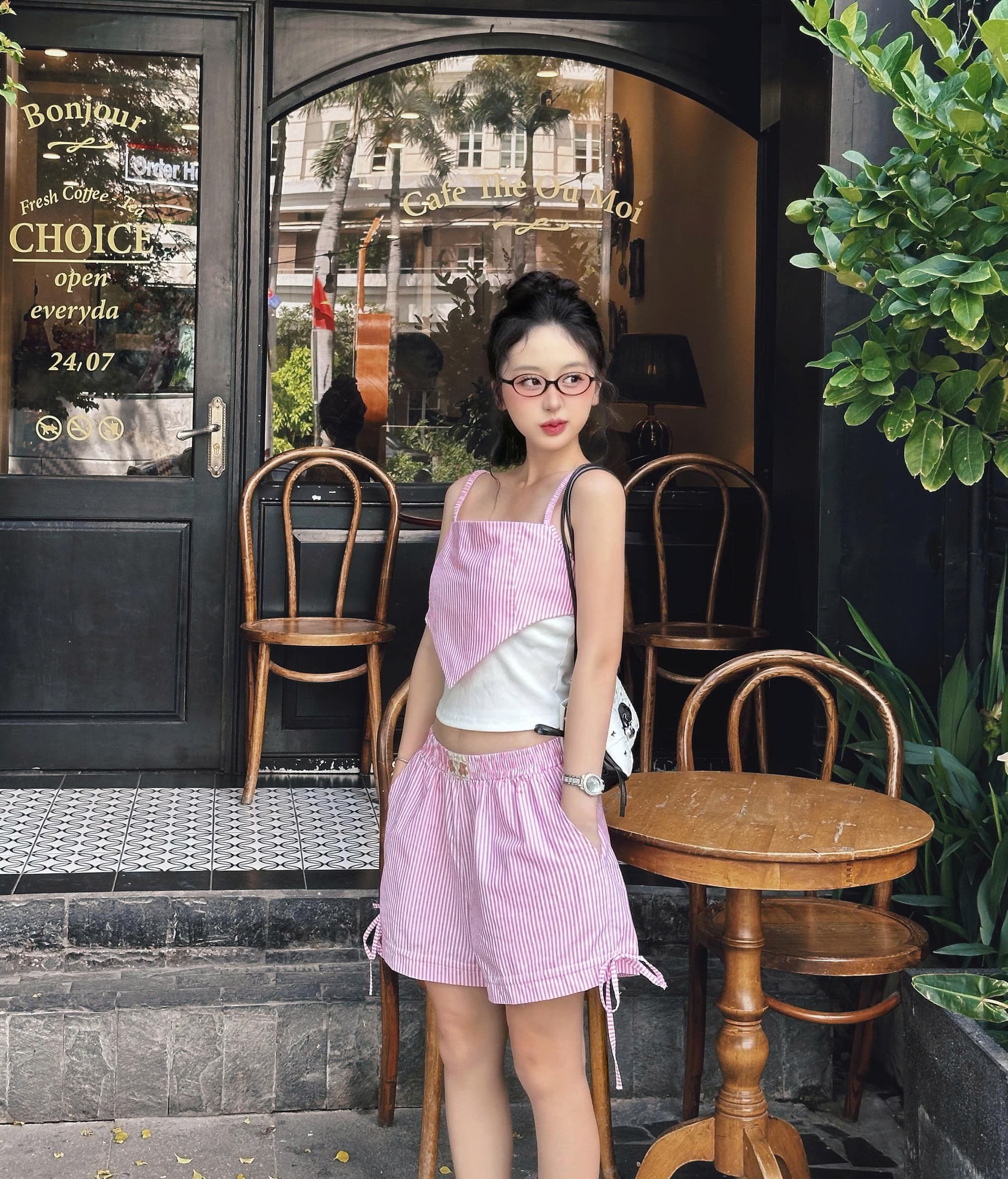 SET LẺ đồ hè áo hai dây (crop top) và quần short với phong cách trẻ trung, năng động. +Màu sắc: • Màu Hồng ĐẬM[H]: Áo và quần có sọc dọc màu hồng • Màu Xanh Dương[X2]: sọc dọc màu xanh dương • Màu Xanh MỎ NEO[X3]: họa tiết mỏ neo nhỏ màu xanh trên nền sọc/chấm bi • Màu Xanh Nhạc[X1]: sọc/chấm bi nhỏ màu xanh dương nhạt +Kích cỡ • Size S • Size M • Size L